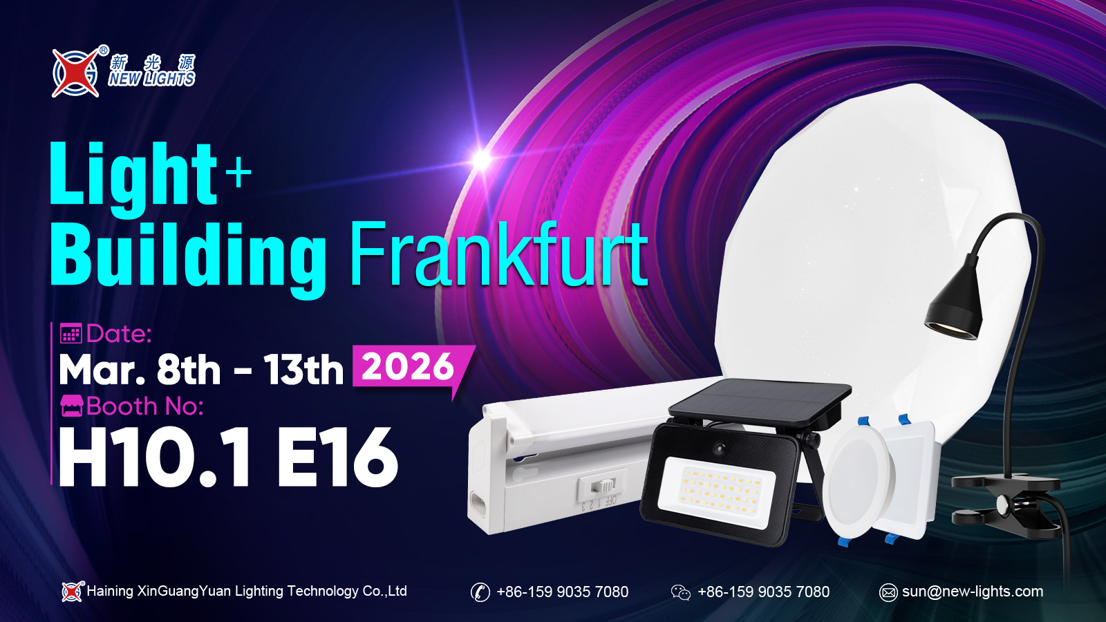 Haining Xin Guang Yuan Lighting Technology Co., Ltd vil deltage i den internationale lysudstilling i Frankfurt, Tyskland, fra kl. 8. marts til 13. marts 2026 . Firmaet udstiller kl Stand H10.1 E16 . Under udstillingen vil Haining Xin Guang Yuan Lighting Technology Co., Ltd fremvise sine nyeste belysningsteknologier og produktløsninger og engagere sig i dybdegående udvekslinger med branchefolk og partnere fra hele verden. Besøgende er velkomne til at kigge forbi standen for diskussioner og samarbejdsmuligheder.